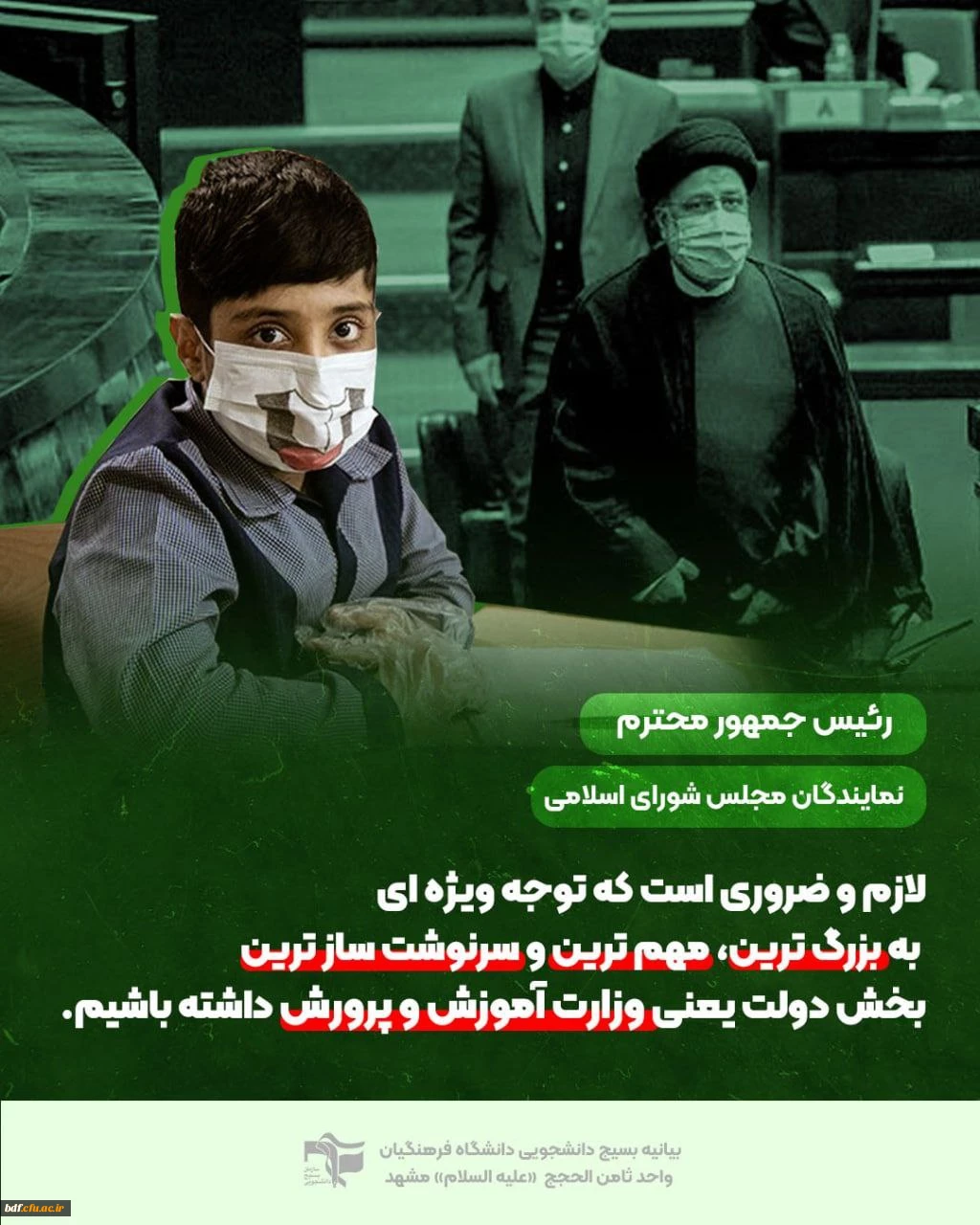 بیانیه بسیج دانشجویی دانشگاه فرهنگیان، واحد ثامن الحجج (ع) مشهد پیرامون وزیر پیشنهادی آموزش و پرورش